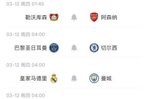 3月12日 04:00 皇马vs曼城