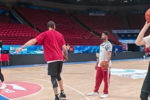 赛前,北京队众将进行踩场训练,四外援悉数在列,新援麦基一同亮相。