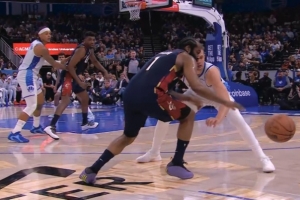 下一篇: 这不是3+1?哈登弧顶单挑班凯罗三分命中被后者扑倒没吹
