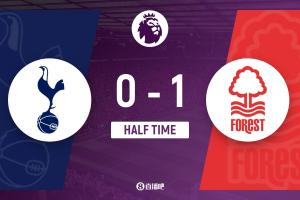 半场-热刺暂0-1森林 伊戈尔·热苏斯头球破门 特尔远射中横梁