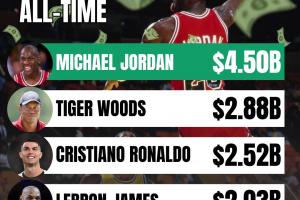 史上运动员收入TOP50:乔丹断层第一!C罗詹姆斯梅西3-5,库里19