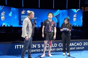 王楚钦:我觉得松岛辉空这么年轻就能够打到世界杯的决赛,并且他一路走来也是实力非常的强,现在进步也非常的大。我也是第一次进入到决赛,所以说面对决赛也是尽我所能,享受比赛就好。