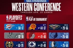 体育资讯04月11日讯 常规赛倒数第二个比赛日,15场比赛全部结束,让我们继续来关注最新排名。