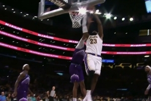 GIF-詹姆斯顶着人强打上篮2+1