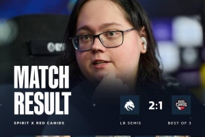 手枪局sh1ro双枪在厕所1换1,Red Canids直接提速进点,埋伏烟雾里的magixx双杀配合队友完成歼灭战!Spirit来到11分!随后Red Canids直接钢枪到底,一波提速进攻B区!但是Spirit一波259烟瞬间打出0换5的TEAM ACE!第三局donk在下水道1换1,Red Canids还是进攻B区,但是单B的zont1x强行三杀顶住局势!Spirit结束比赛,保留晋级希望!