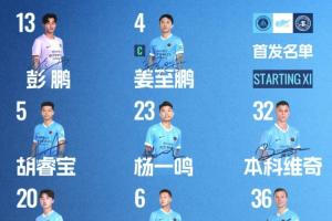 4-姜至鹏5-胡睿宝 6-姚均晟 7-韦斯利(C) 10-戴伟浚13-彭鹏(GK) 20-玄智健23-杨一鸣 31-奥乌苏 32-本科维奇36-卡尔采夫