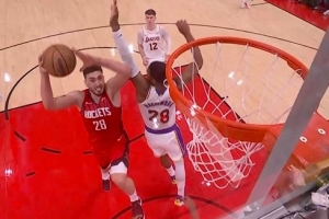 GIF-申京假传真上越过八村塁单臂劈扣