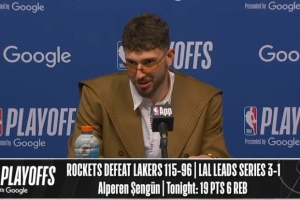 体育资讯4月27日讯 火箭在主场以115-96击败湖人,将系列赛比分扳至1-3。赛后申京接受了媒体采访,以下为采访全文。