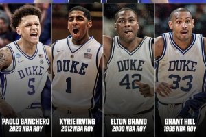 据统计,弗拉格成为杜克大学队史第5位荣膺NBA年度最佳新秀的球员。其余4人分别为: