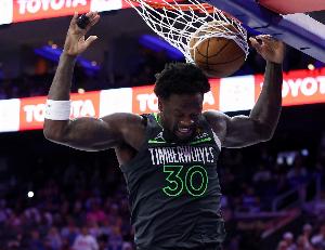体育资讯4月28日讯 NBA季后赛,森林狼上半场以51-60落后掘金。