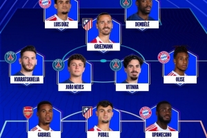 前锋:路易斯·迪亚斯(拜仁)、格列兹曼(马竞)、登贝莱(巴黎)