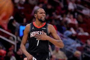 谈到杜兰特在火箭体系中的角色,乌度卡说:“我认为他打过所有位置,而且他在所有这些位置上都很舒服。我认为对我们来说,事实是弗雷德(范弗里特)缺阵,我们的年轻球员又在实战中学习,他不得不更多地承担起持球组织的角色,这是他习惯并且感到舒适的。虽然失误数有时会偏高,尤其是面对对手的包夹和围堵,但我觉得,不管你想叫他二号位、三号位还是四号位,他在所有这些位置上都感觉很自如,我们在这些位置上对他的使用也基本相同。但关键在于,他能做掩护,而且对手不敢轻易放空他,这能为队友创造空间,让他们冲击内线;同时他自己也能持球和背身单打。所以他能做到以上所有事情。我认为,显而易见,数据也显示,他是一个技术非常全面的得分手。”